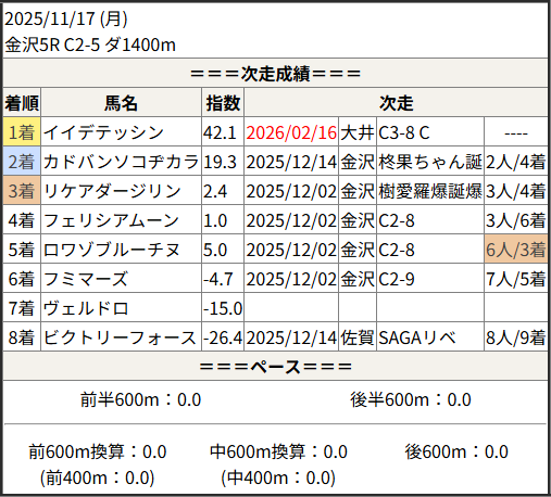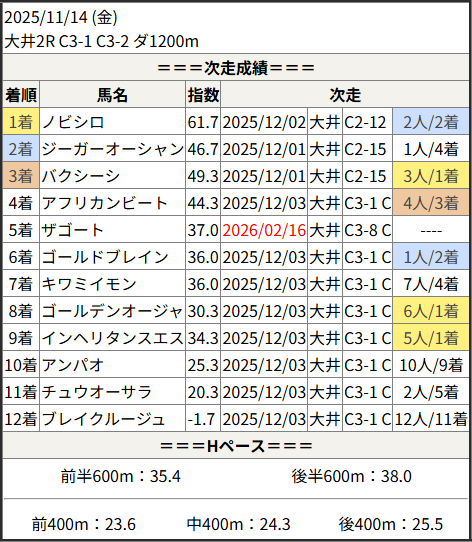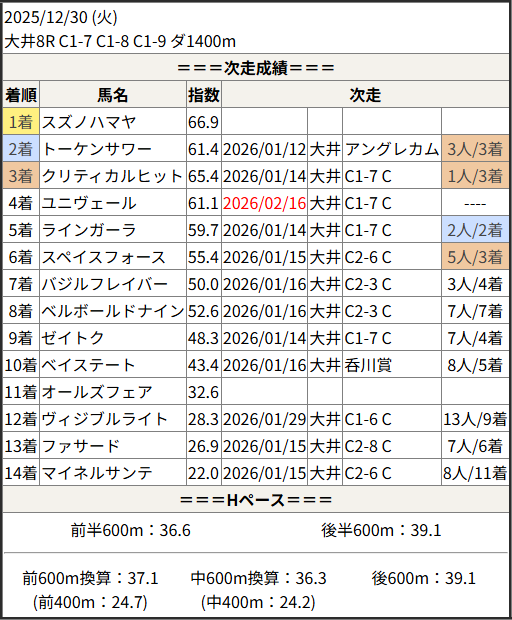 今回のメンバー相手に通用するかは、スピード指数表と合わせてご覧下さい。
