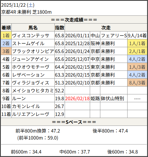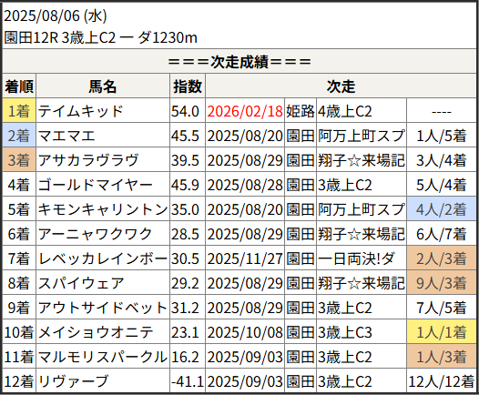 Home / 予想データ / 次走好走 / 2026/02/18 次走好走馬の目立つ組出身