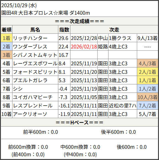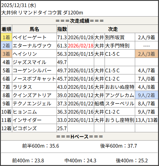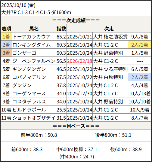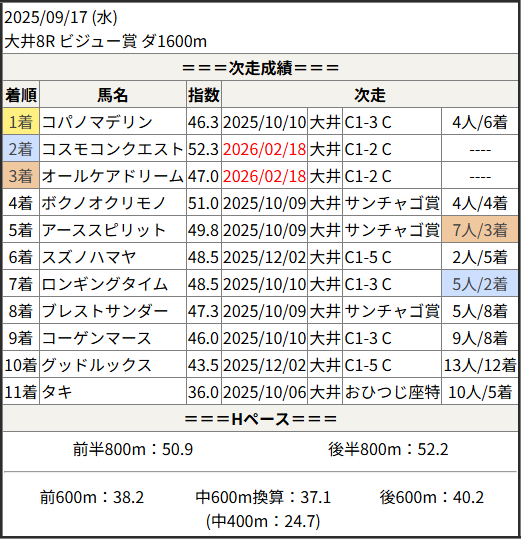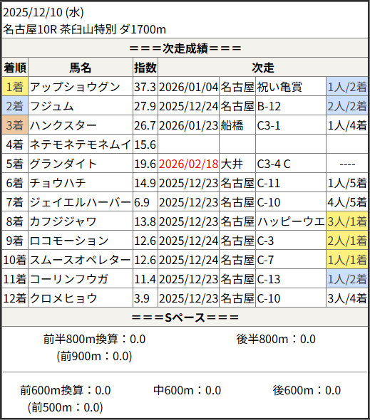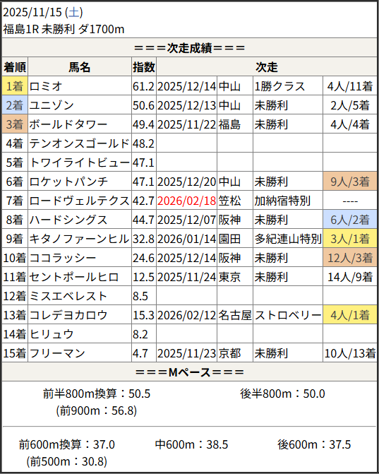 今回のメンバー相手に通用するかは、スピード指数表と合わせてご覧下さい。