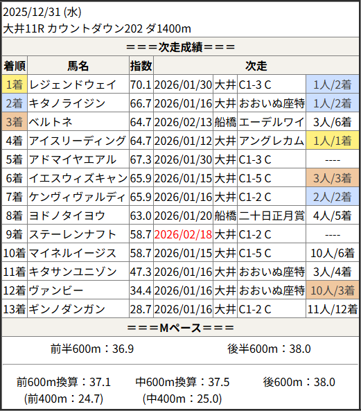 2026/02/18 大井7R C1-2 C1-3 C1-4:結果