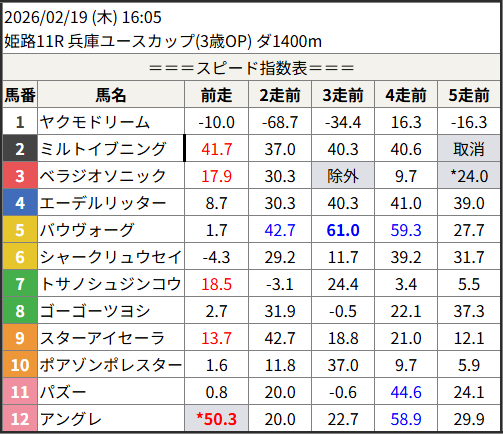 Home / 予想データ / 2026/02/19 スピード指数表スピード指数予想データ2026/02/19 スピード指数表による shunrai コメントはまだありません2026年2月18日 20:25 ※見解・買い目はこちらを参照ください。 大井 笠松 姫路 共有: X で共有 (新しいウィンドウで開きます) X 友達にメールでリンクを送信 (新しいウィンドウで開きます) メールアドレス Facebook で共有 (新しいウィンドウで開きます) Facebook いいね:いいね 読み込み中…Share ArticlePrevious Article2026/02/18 次走好走馬の目立つ組出身shunraiRelated Posts 2026/02/18 スピード指数表 2026年2月17日 2026/02/17 スピード指数表 2026年2月16日 2026/02/16 スピード指数表 2026年2月15日コメントを残す コメントをキャンセルメールアドレスが公開されることはありません。 ※ が付いている欄は必須項目ですコメント名前 メール サイト 次回のコメントで使用するためブラウザーに自分の名前、メールアドレス、サイトを保存する。 Δ