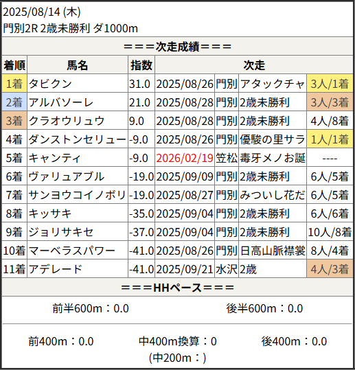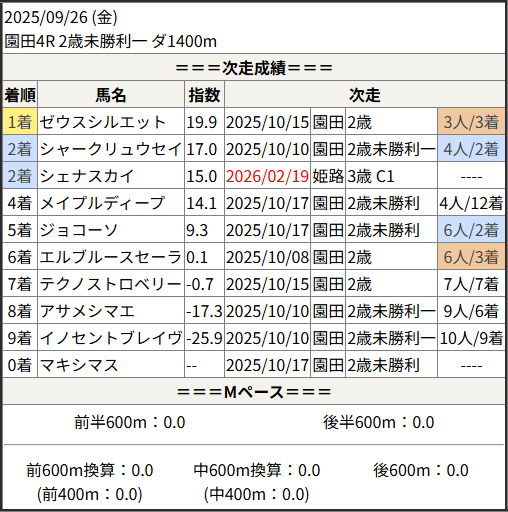 今回のメンバー相手に通用するかは、スピード指数表と合わせてご覧下さい。