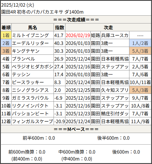 2026/02/19 姫路3R 3歳 C1:結果