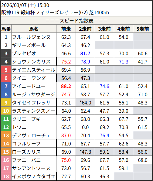 Home / 予想データ / 2026/03/07 スピード指数表スピード指数予想データ2026/03/07 スピード指数表による shunrai コメントはまだありません2026年3月6日 14:07 ※見解・買い目はこちらを参照ください。 中山 阪神 佐賀 共有: X で共有 (新しいウィンドウで開きます) X 友達にメールでリンクを送信 (新しいウィンドウで開きます) メールアドレス Facebook で共有 (新しいウィンドウで開きます) Facebook いいね:いいね 読み込み中…Share ArticlePrevious Article2026/03/05 川崎8R 馬連○◎ 11,200円🎯shunraiRelated Posts 2026/03/06 スピード指数表 2026年3月5日 2026/03/05 スピード指数表 2026年3月4日 2026/03/04 スピード指数表 2026年3月3日コメントを残す コメントをキャンセルメールアドレスが公開されることはありません。 ※ が付いている欄は必須項目ですコメント名前 メール サイト 次回のコメントで使用するためブラウザーに自分の名前、メールアドレス、サイトを保存する。 Δ