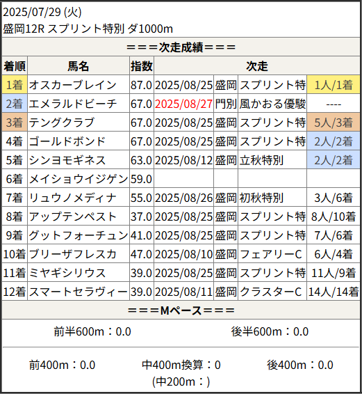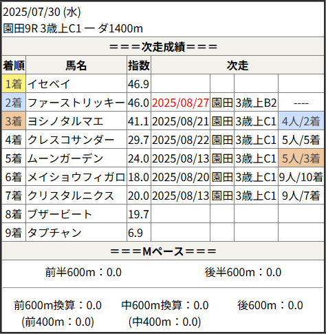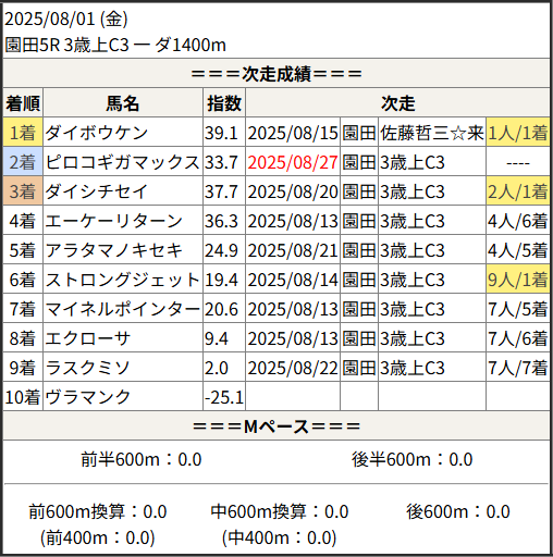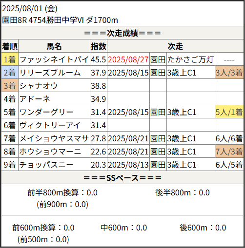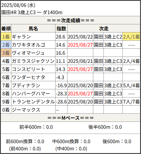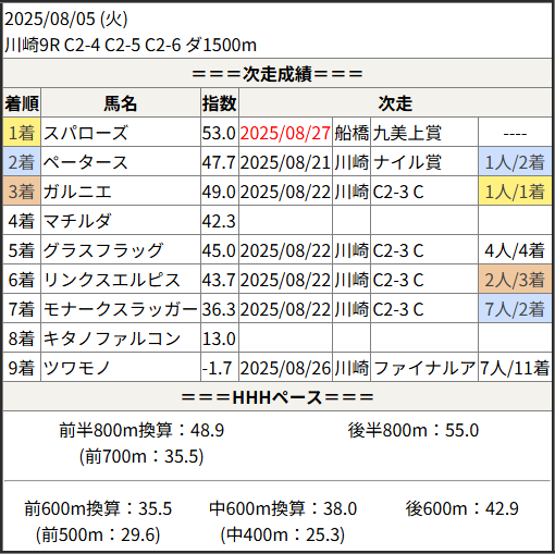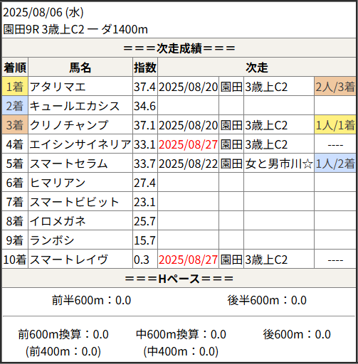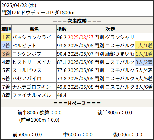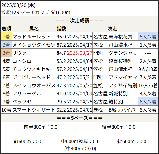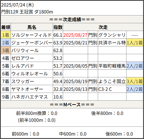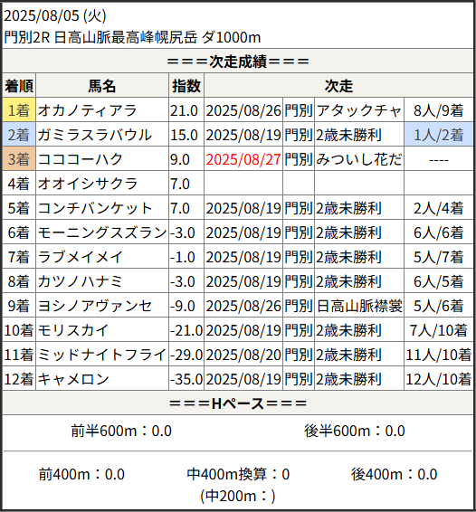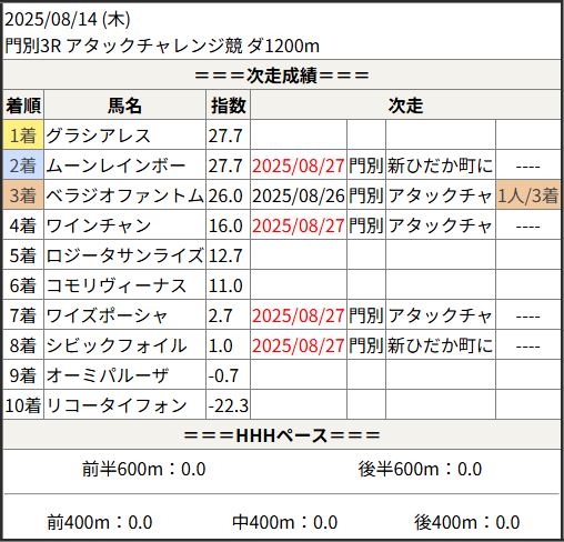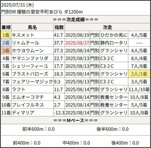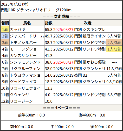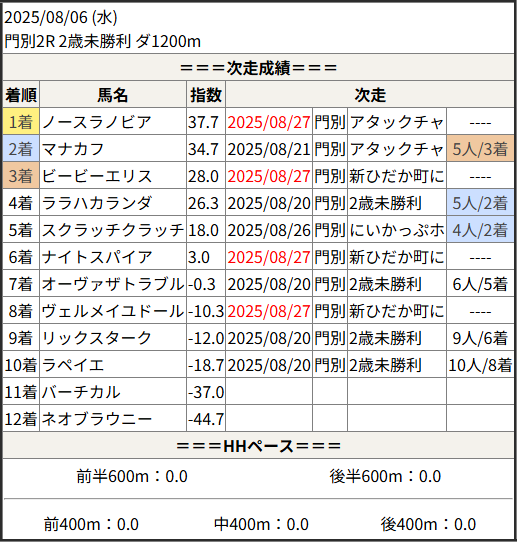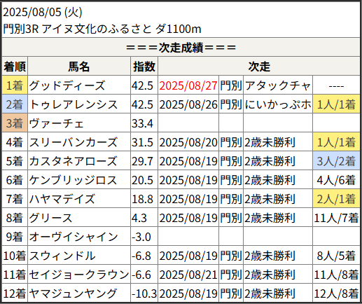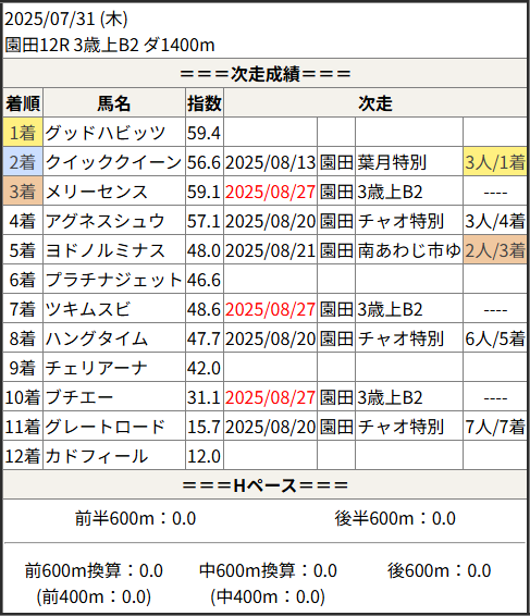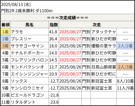 Home / 予想データ / 次走好走 / 2025/08/27 次走好走馬の目立つ組出身
