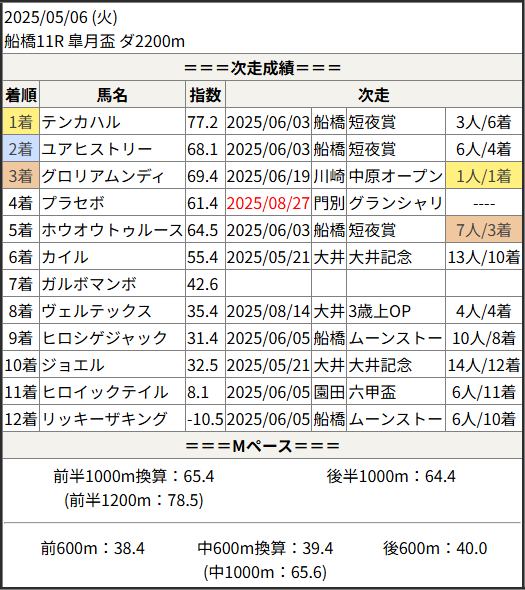 今回のメンバー相手に通用するかは、スピード指数表と合わせてご覧下さい。