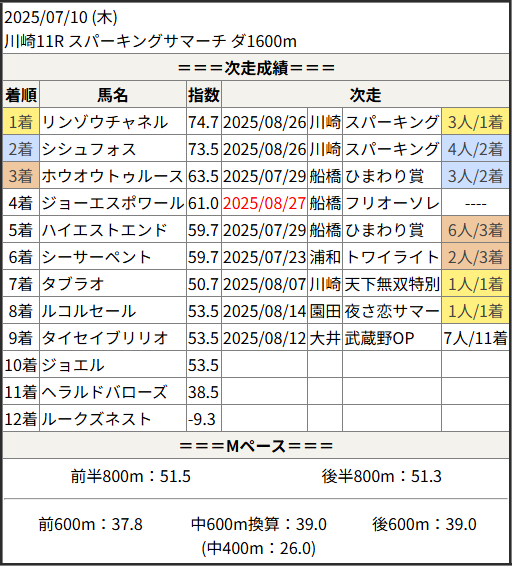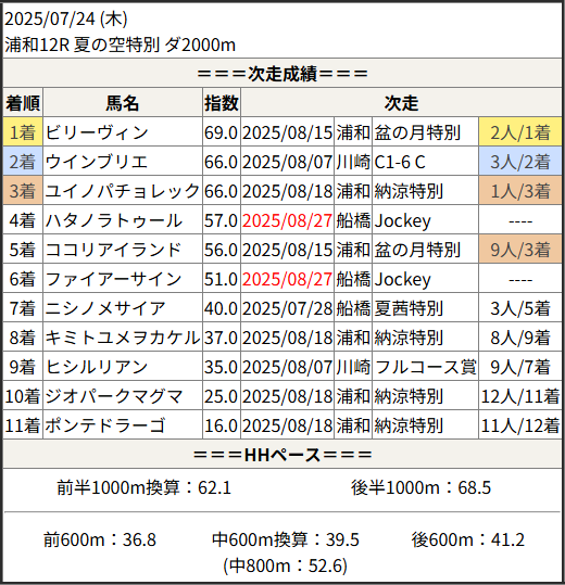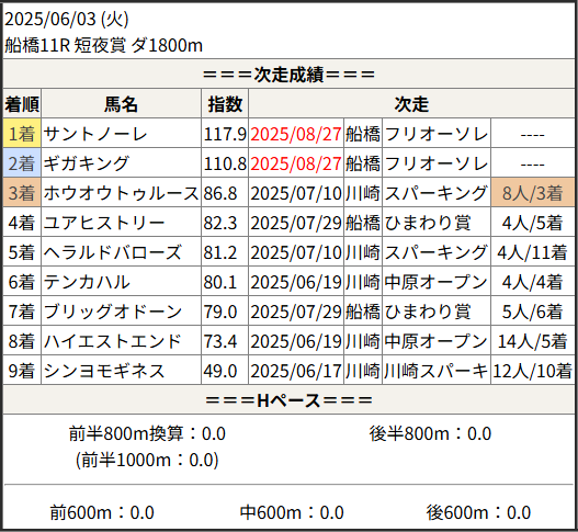 2025/08/27 船橋11R フリオーソレジェンド:結果