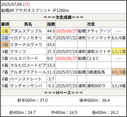 2025/08/27 船橋4R ナティブーツ特別:結果