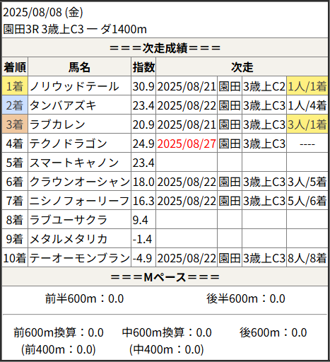 2025/08/27 園田11R たかさご万灯祭特別:結果