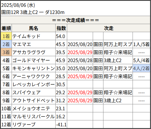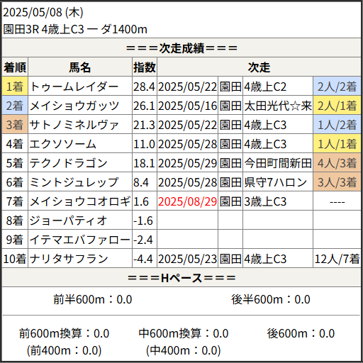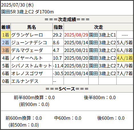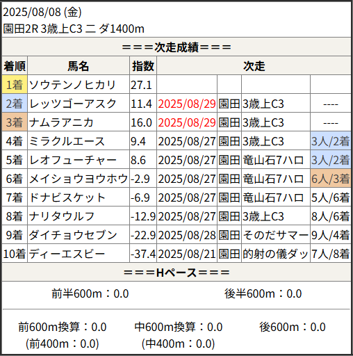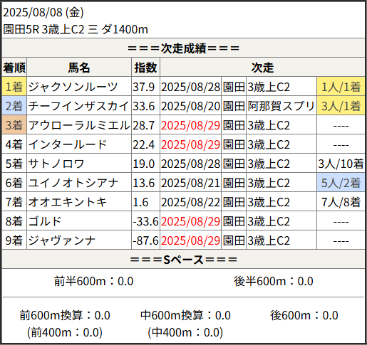 2025/08/29 園田2R 3歳上C3 二:結果