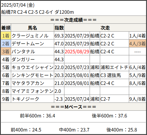 2025/08/29 船橋5R C2-4 C2-5 C2-6イ:結果