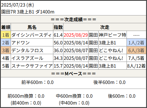 2025/08/29 船橋7R トーシンブリザードメ:結果