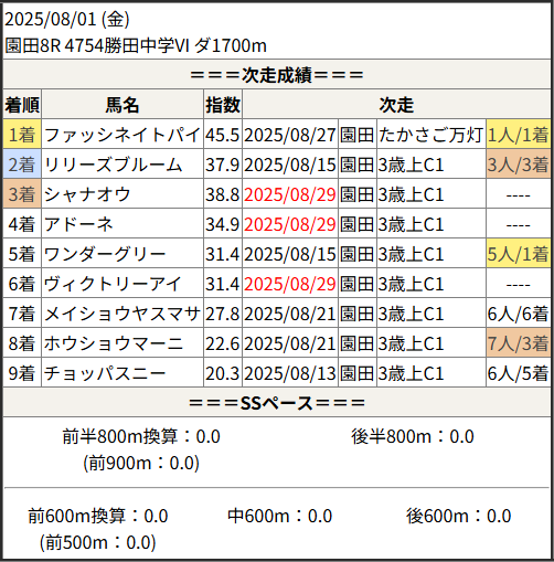 2025/08/29 船橋8R 馬い!山武たがやす倶:結果