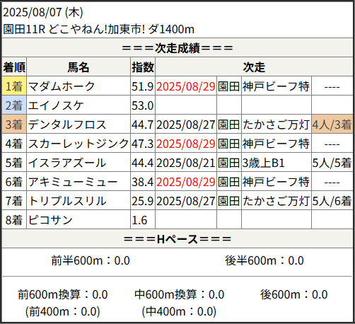 2025/08/29 園田11R 神戸ビーフ特別:結果