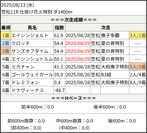 2025/08/29 笠松4R 夏の宵特別:結果