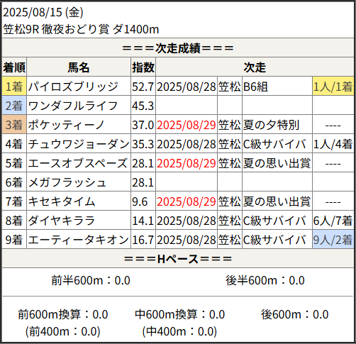 2025/08/29 笠松12R 夏の夕特別:結果