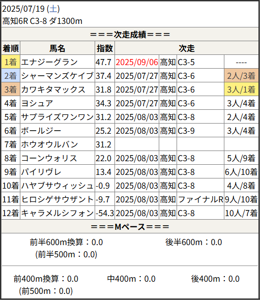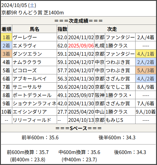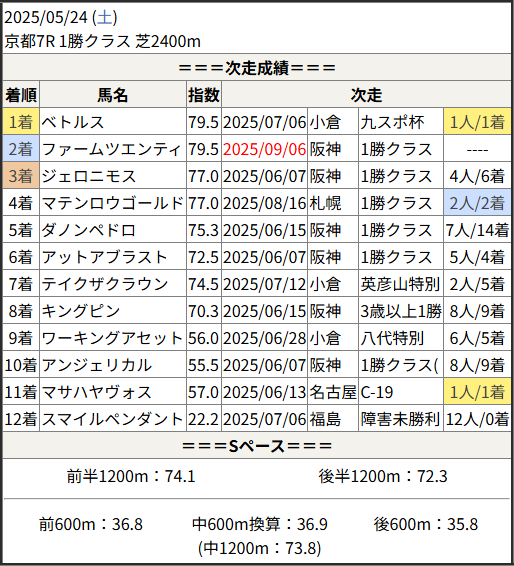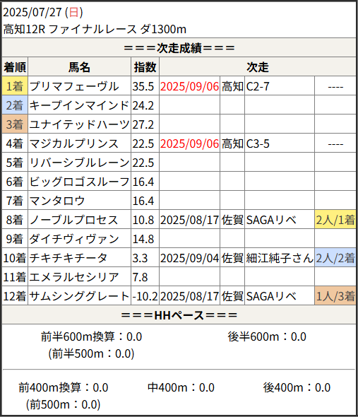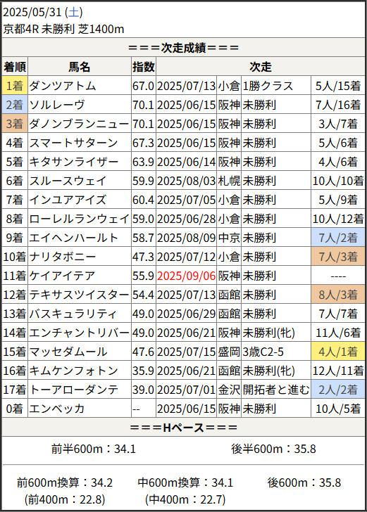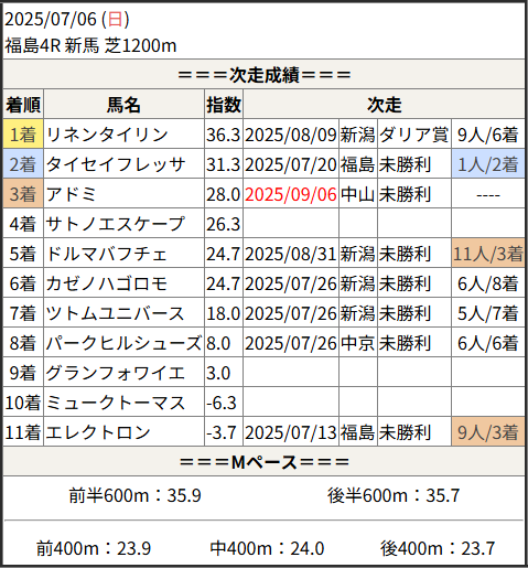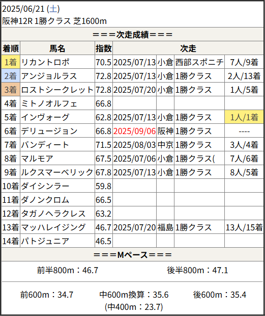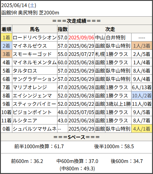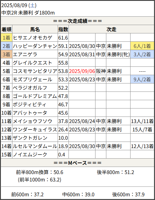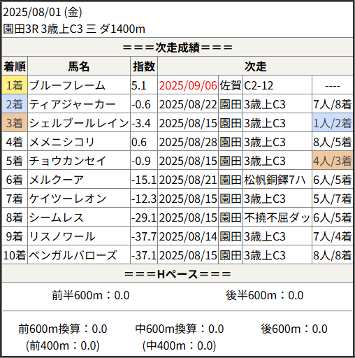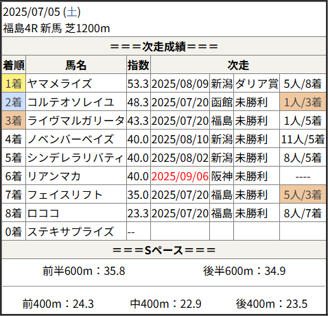 2025/09/06 札幌8R 1勝クラス(牝):結果