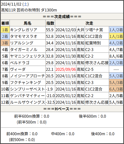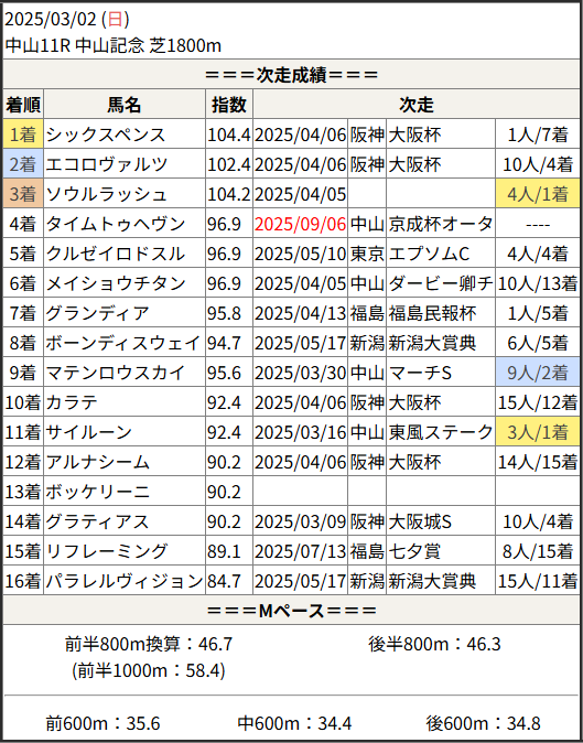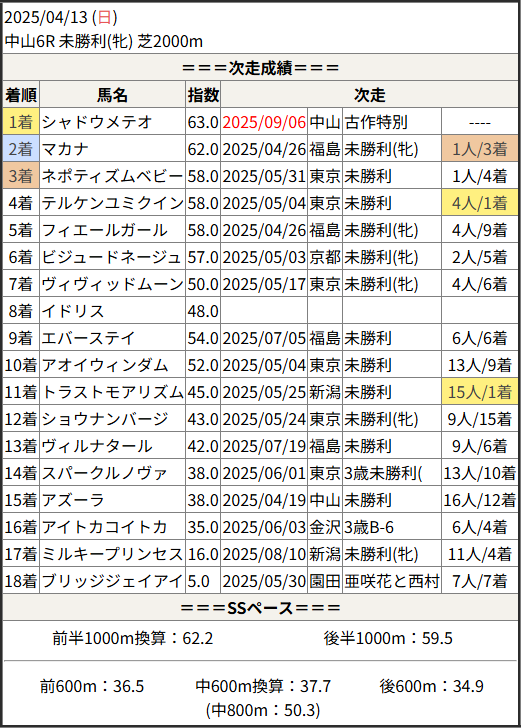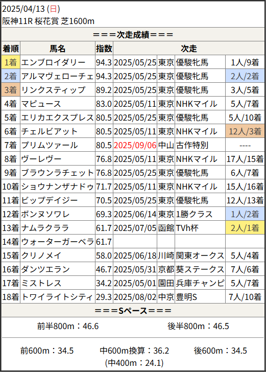 今回のメンバー相手に通用するかは、スピード指数表と合わせてご覧下さい。