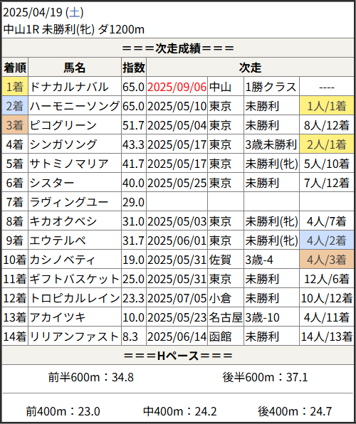 2025/09/06 中山8R 1勝クラス(牝):結果