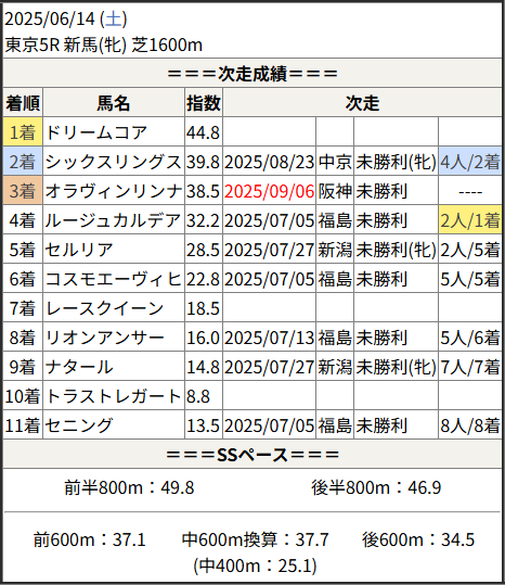2025/09/06 札幌11R 札幌2歳ステークス:結果
