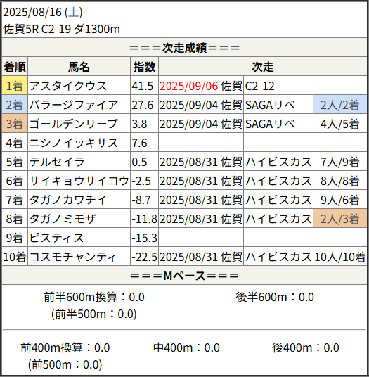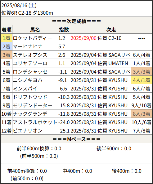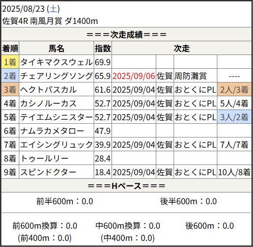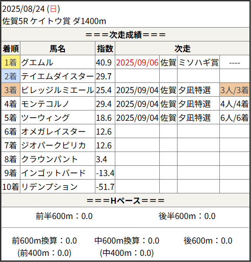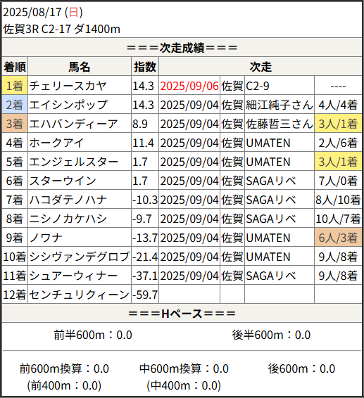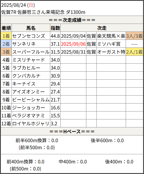 2025/09/06 佐賀9R ミソハギ賞:結果