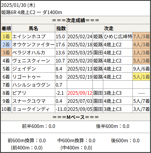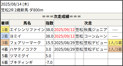 今回のメンバー相手に通用するかは、スピード指数表と合わせてご覧下さい。
