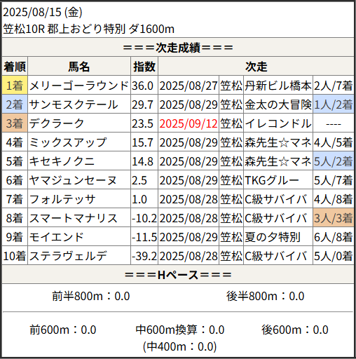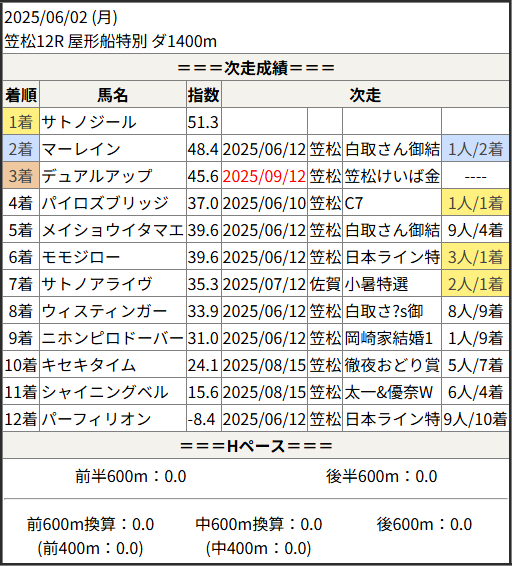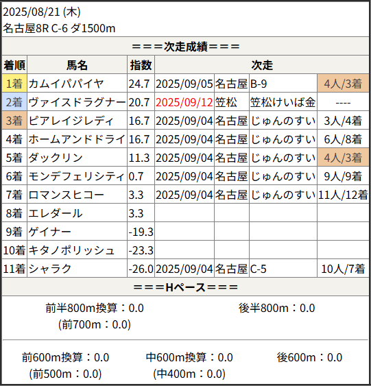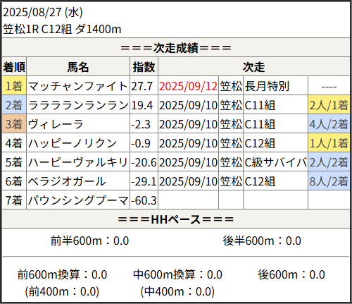 2025/09/12 笠松12R 長月特別:結果
