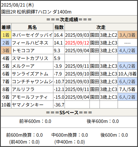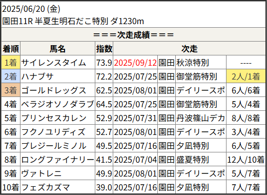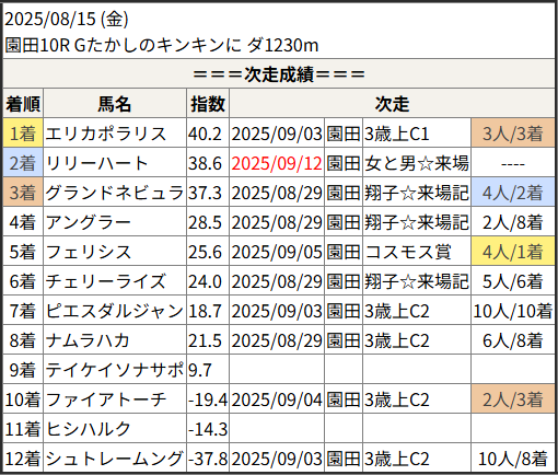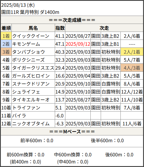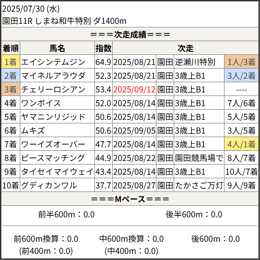 2025/09/12 園田11R 秋涼特別:結果