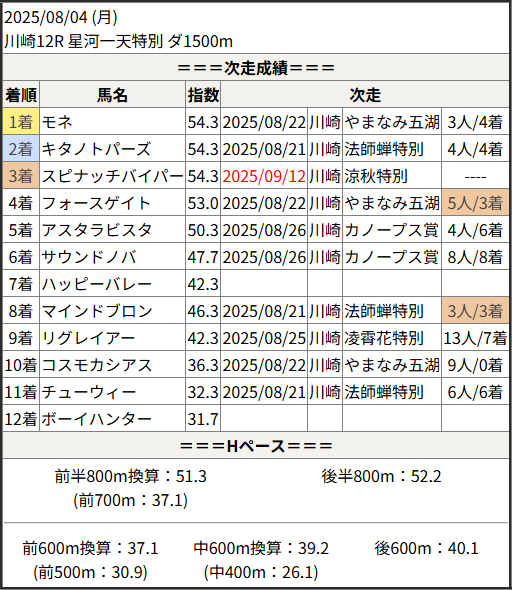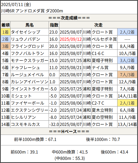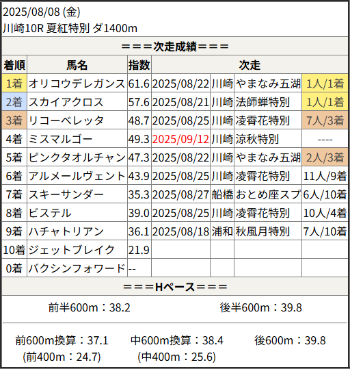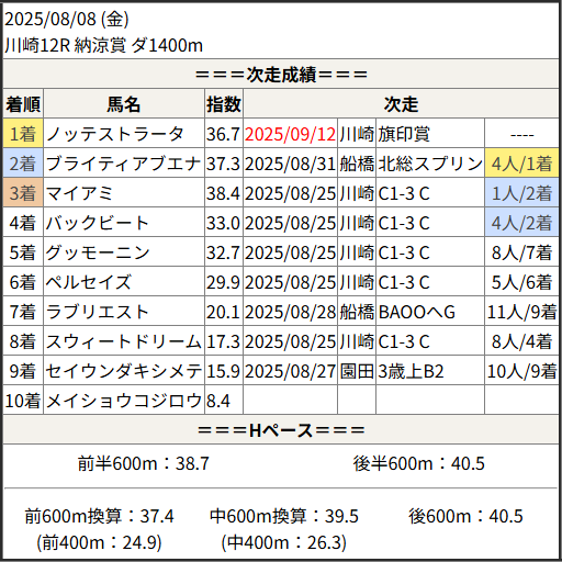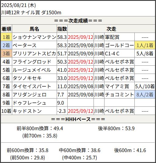 2025/09/12 川崎10R 涼秋特別:結果