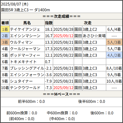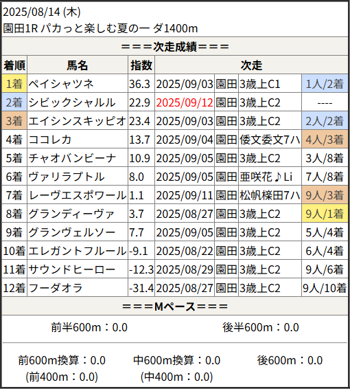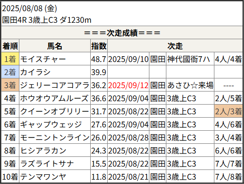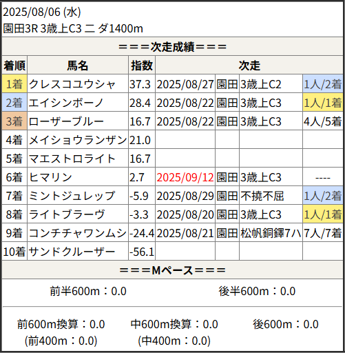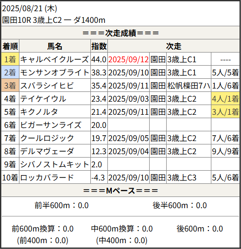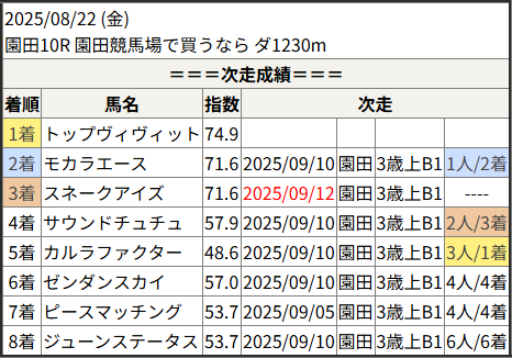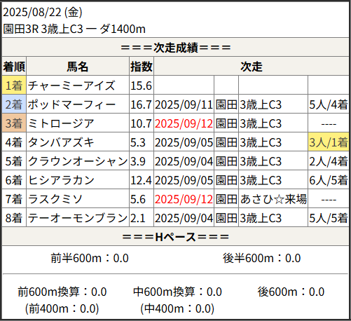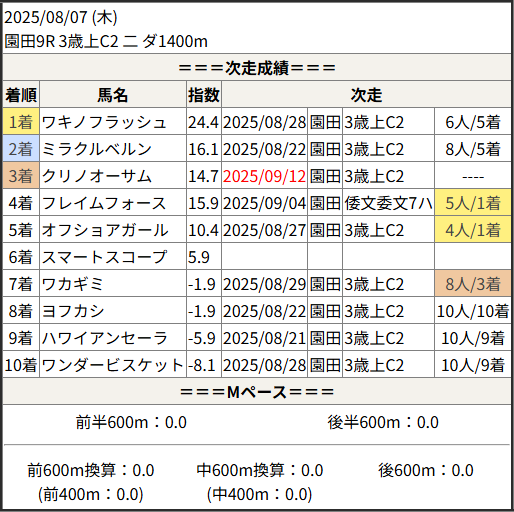 2025/09/12 園田8R 3歳上C1:結果