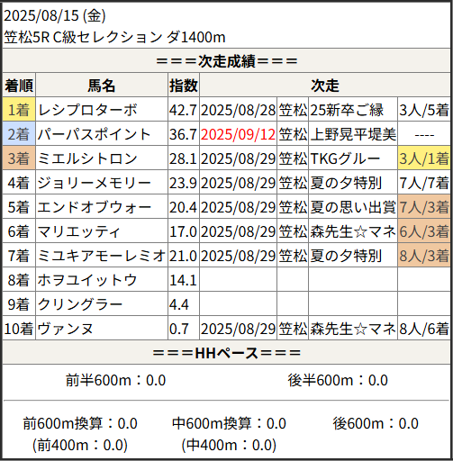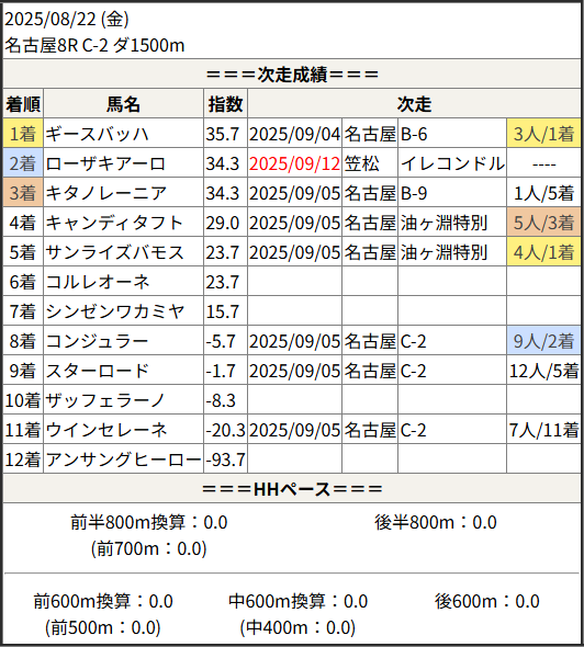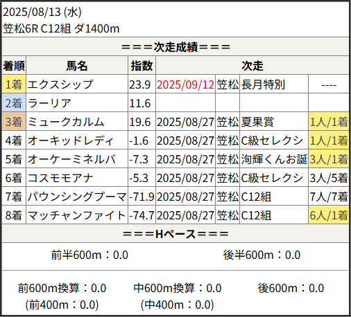 2025/09/12 笠松8R イレコンドルスター笠:結果