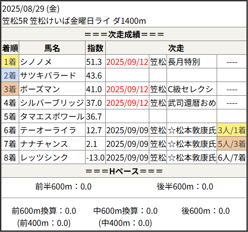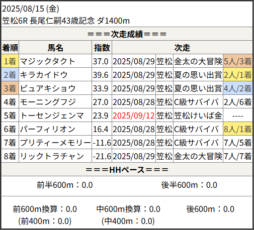 2025/09/12 笠松6R 笠松けいば金曜日ライ:結果