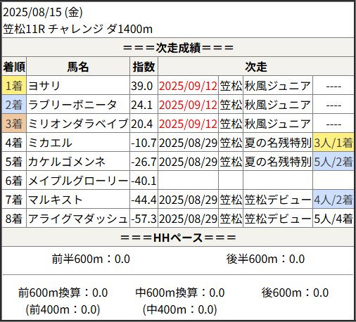 2025/09/12 笠松11R 秋風ジュニア:結果
