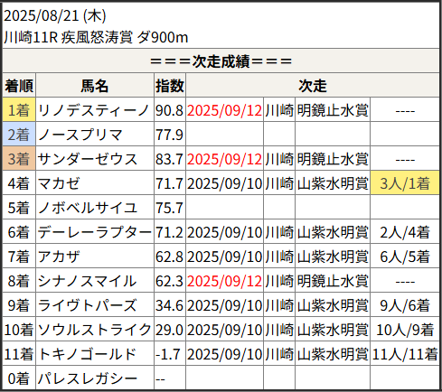 2025/09/12 川崎11R 明鏡止水賞:結果