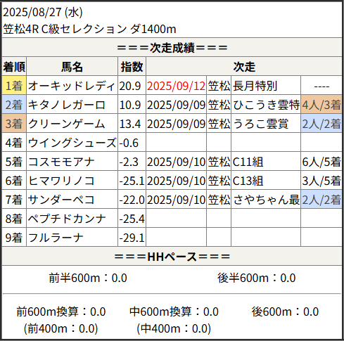 2025/09/12 笠松4R コーンムーン特別:結果