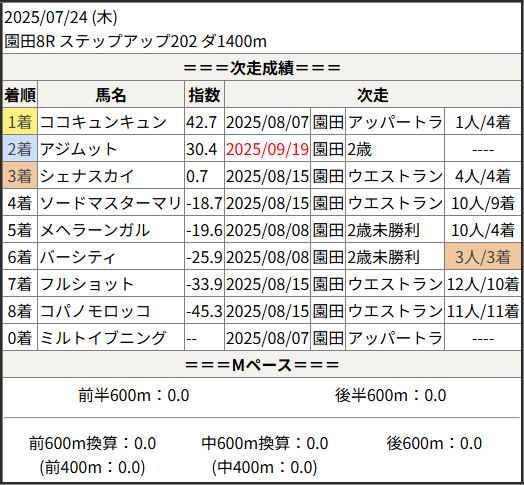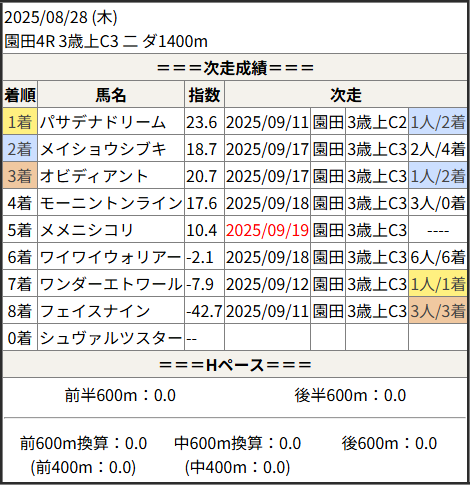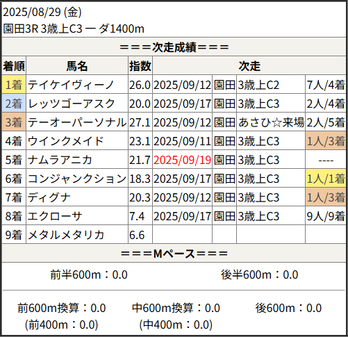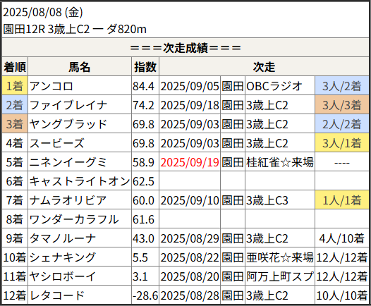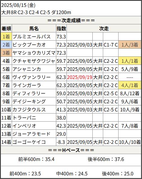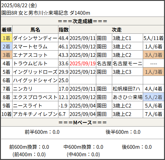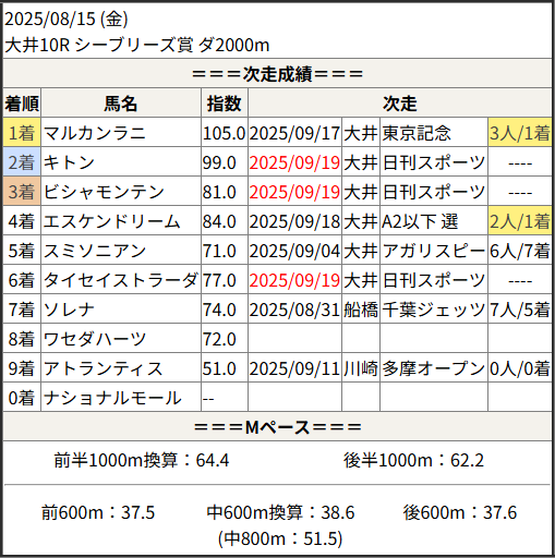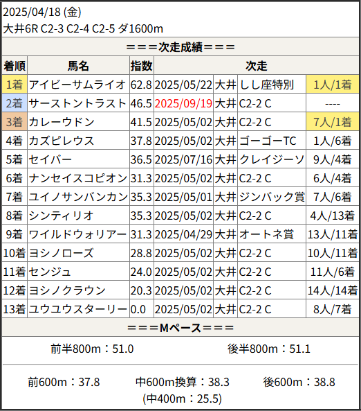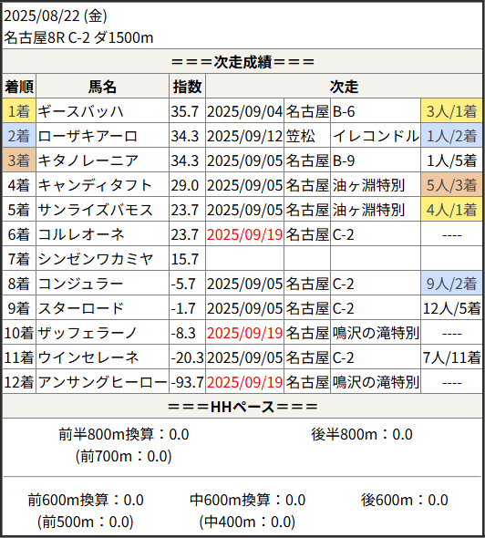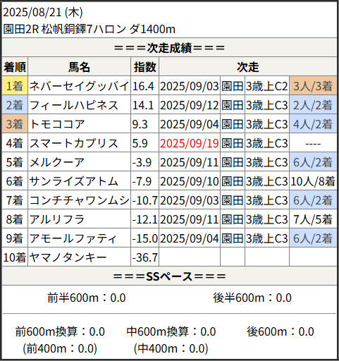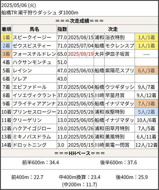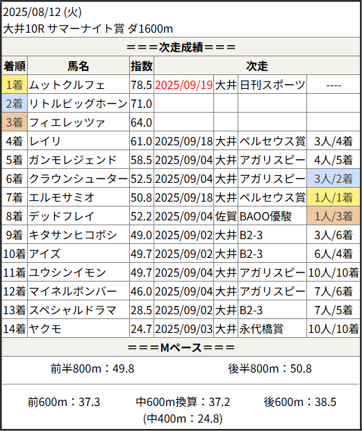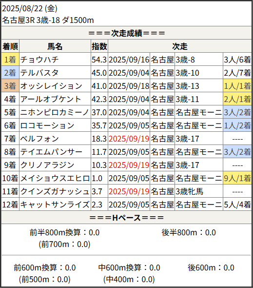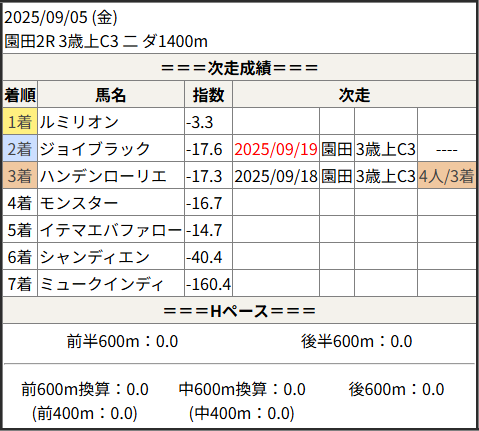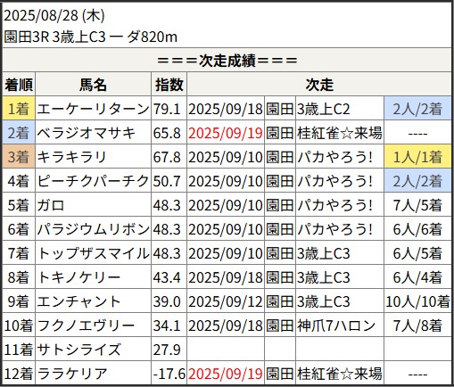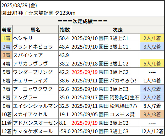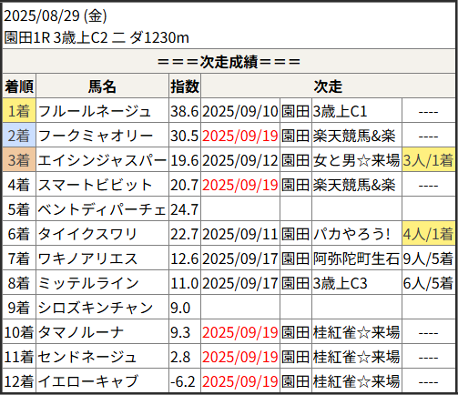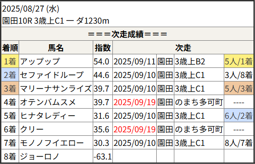 Home / 予想データ / 次走好走 / 2025/09/19 次走好走馬の目立つ組出身