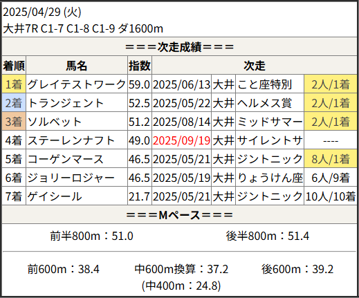2025/09/19 大井7R C2-2 C2-3 C2-4:結果
