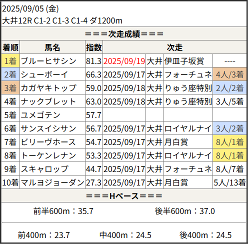 2025/09/19 大井12R 伊皿子坂賞:結果