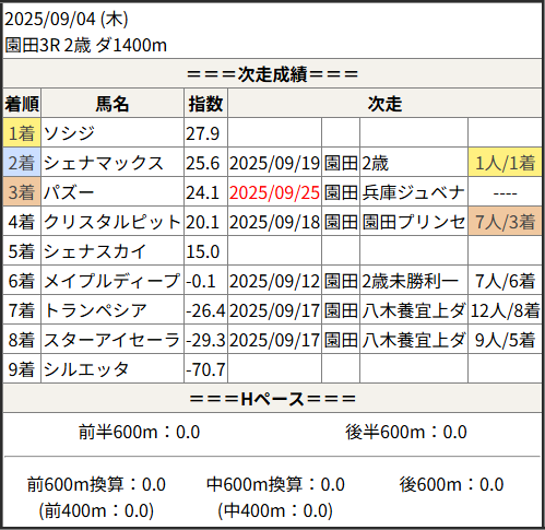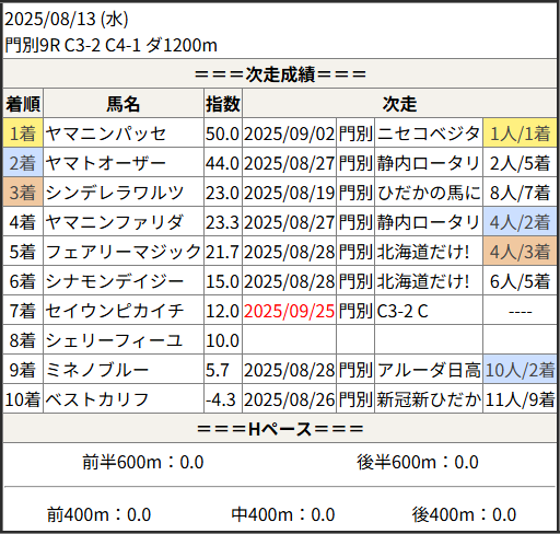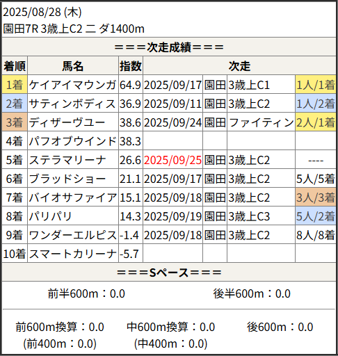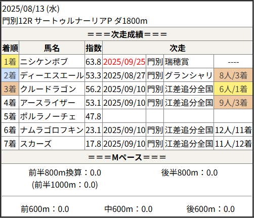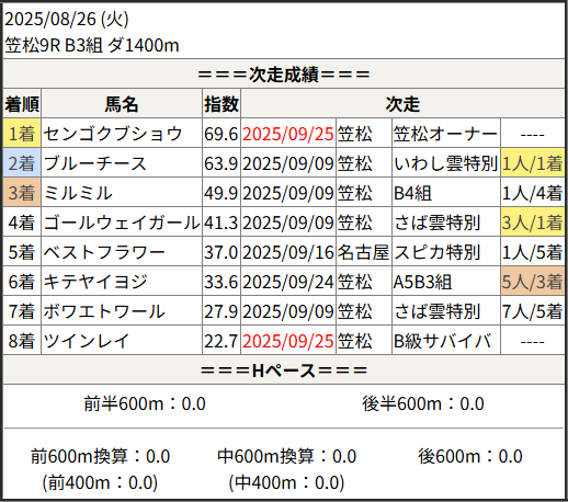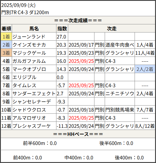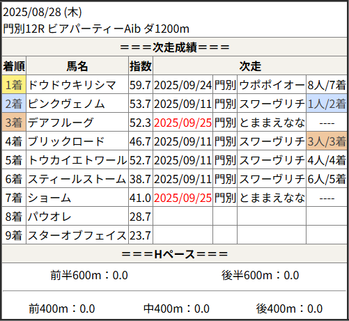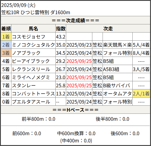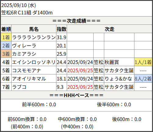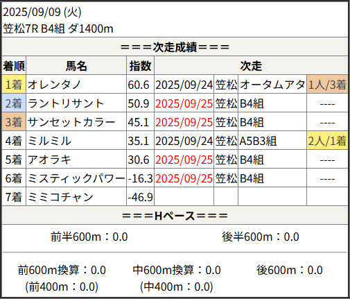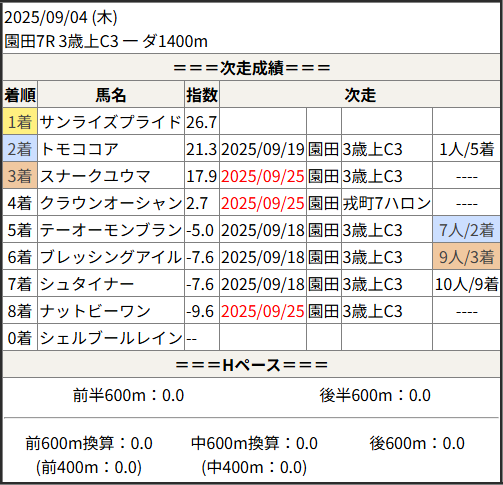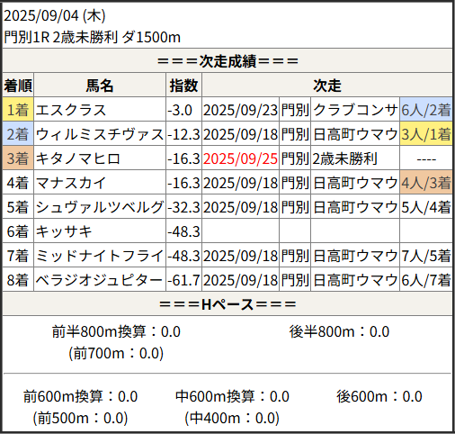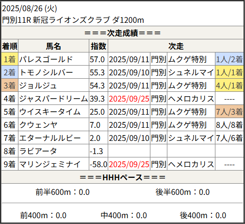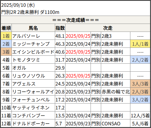 Home / 予想データ / 次走好走 / 2025/09/25 次走好走馬の目立つ組出身