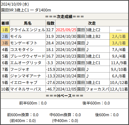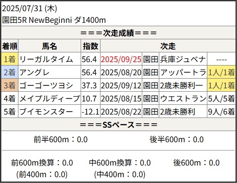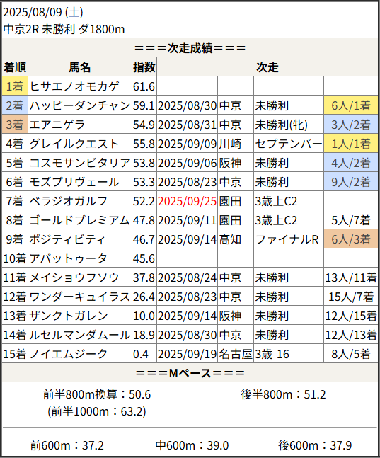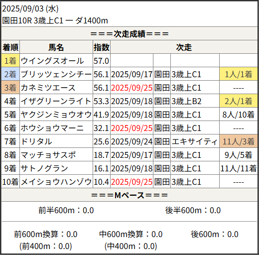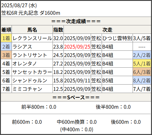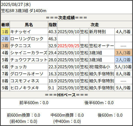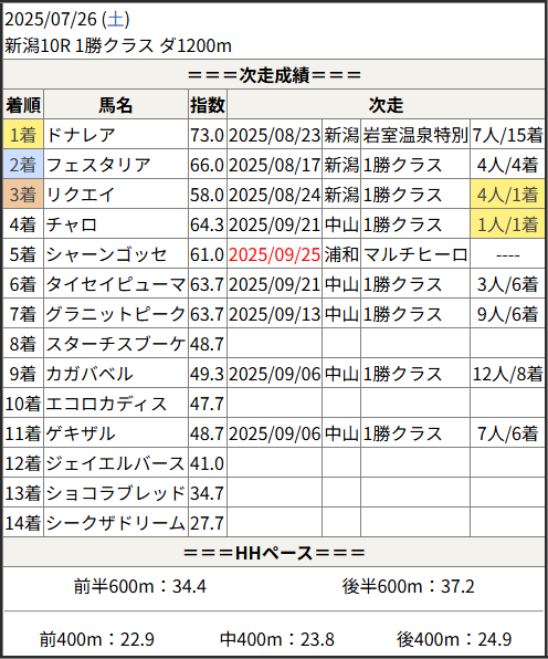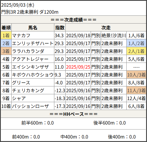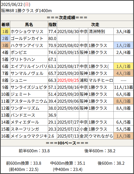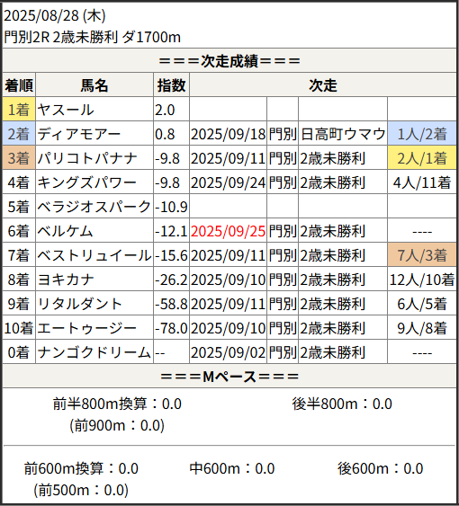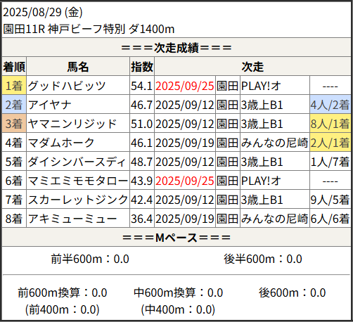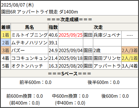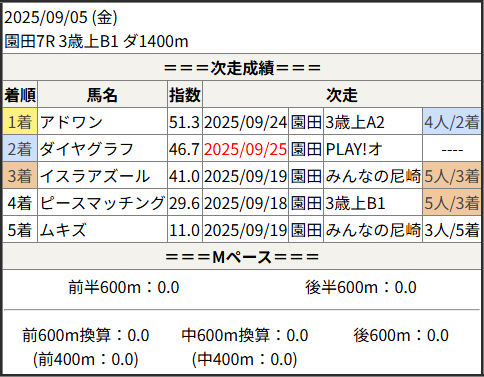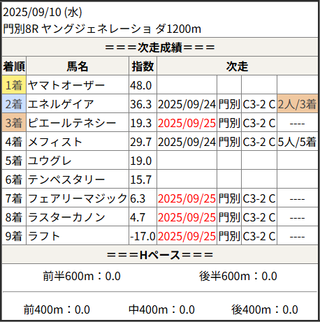 Home / 予想データ / 次走好走 / 2025/09/25 次走好走馬の目立つ組出身