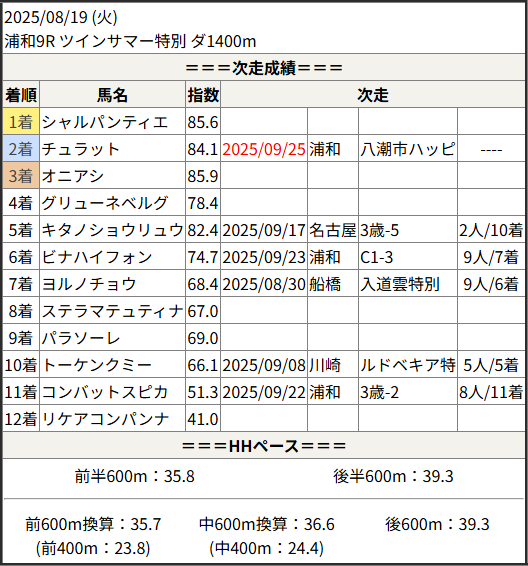 2025/09/25 浦和10R マルチヒーロー特別:結果