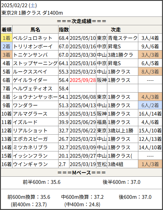今回のメンバー相手に通用するかは、スピード指数表と合わせてご覧下さい。