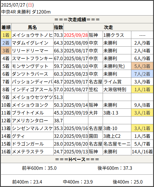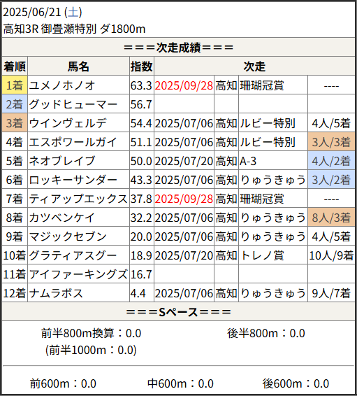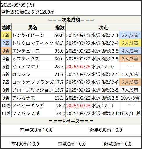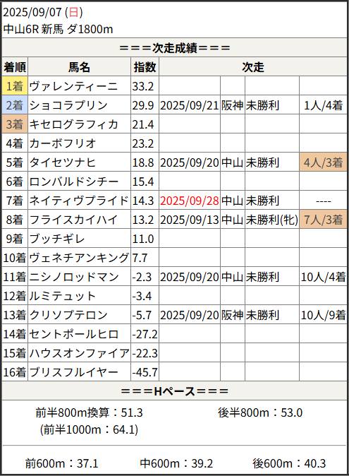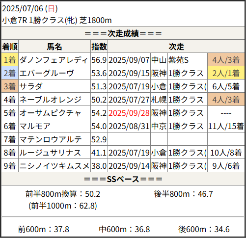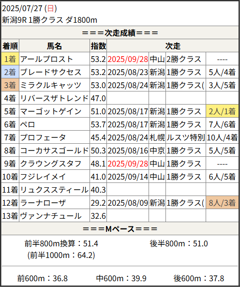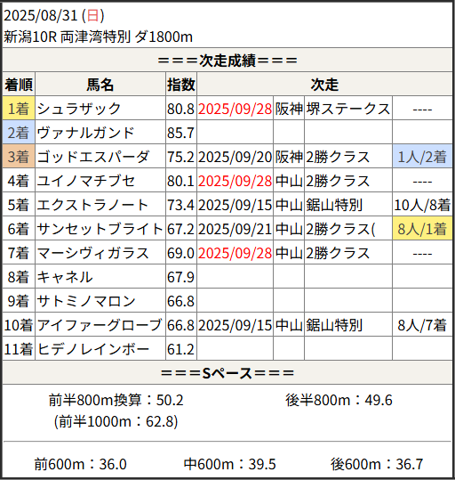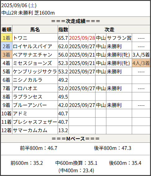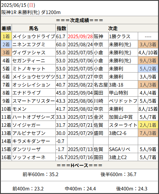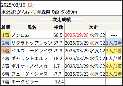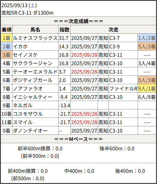 Home / 予想データ / 次走好走 / 2025/09/28 次走好走馬の目立つ組出身