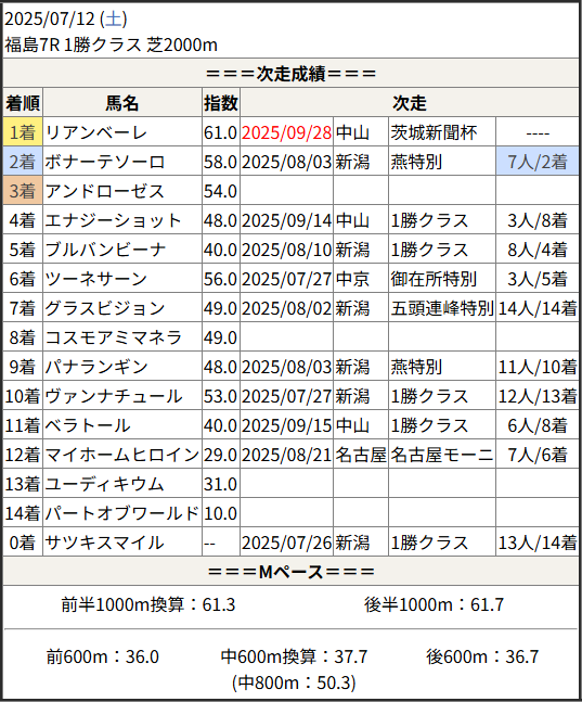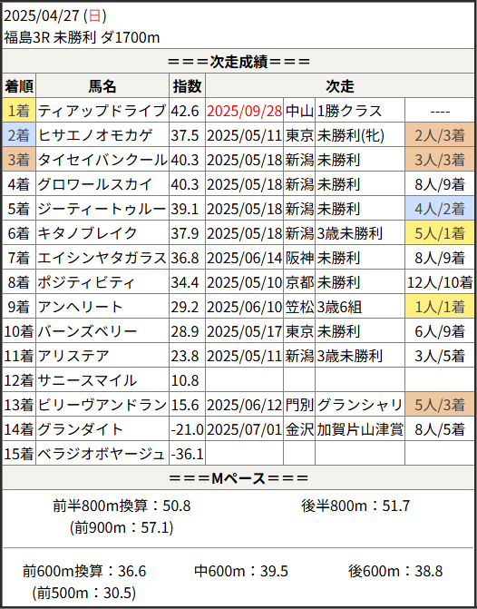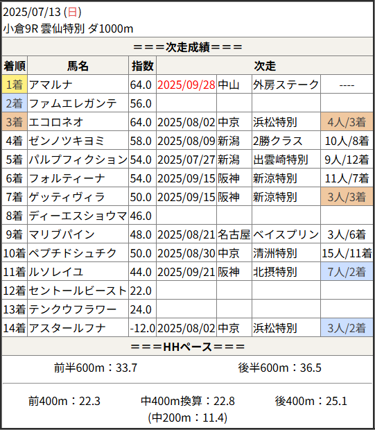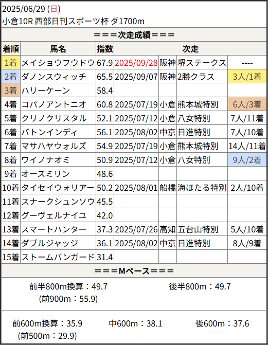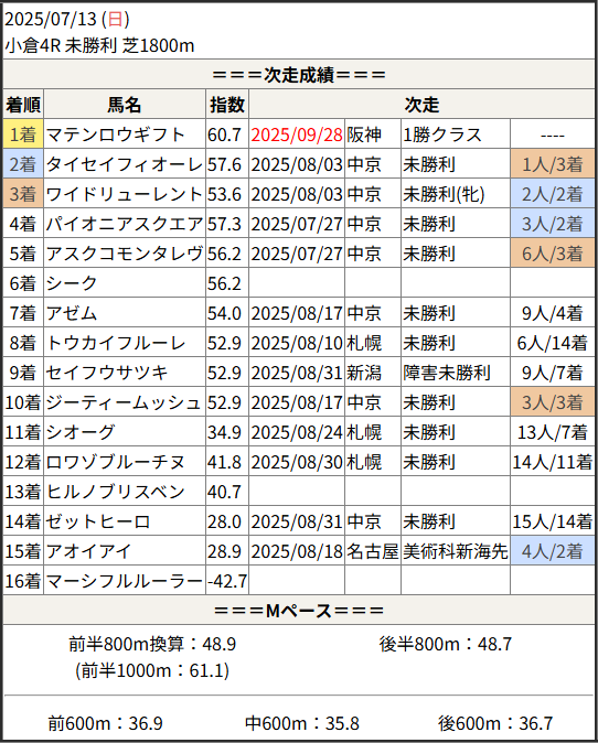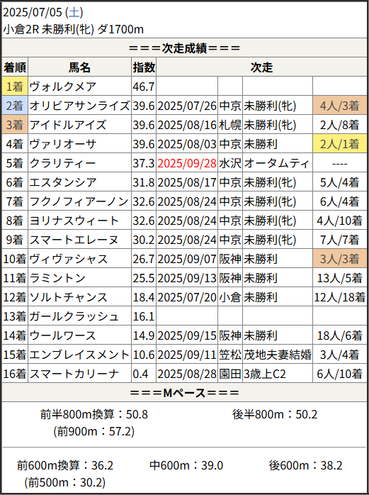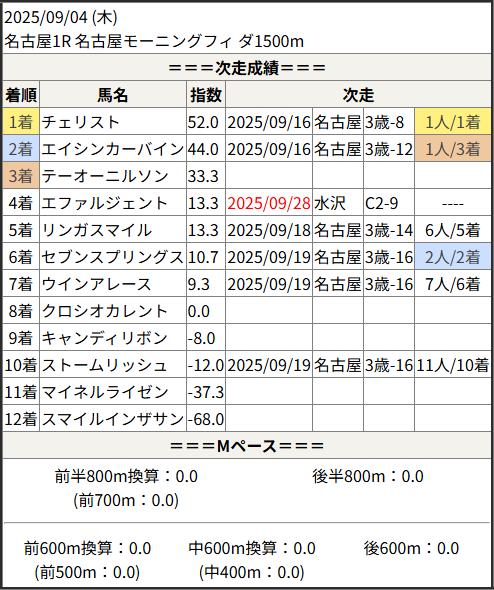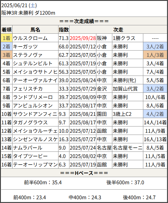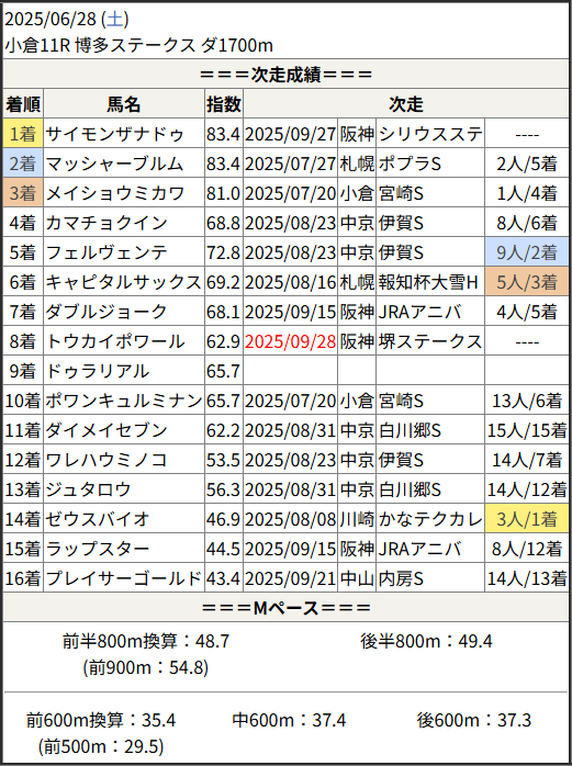 Home / 予想データ / 次走好走 / 2025/09/28 次走好走馬の目立つ組出身