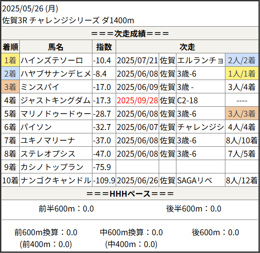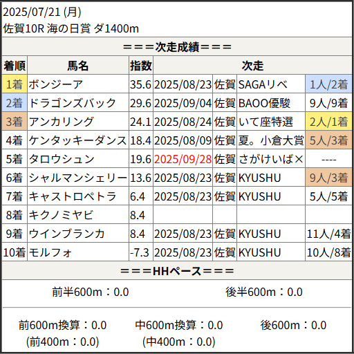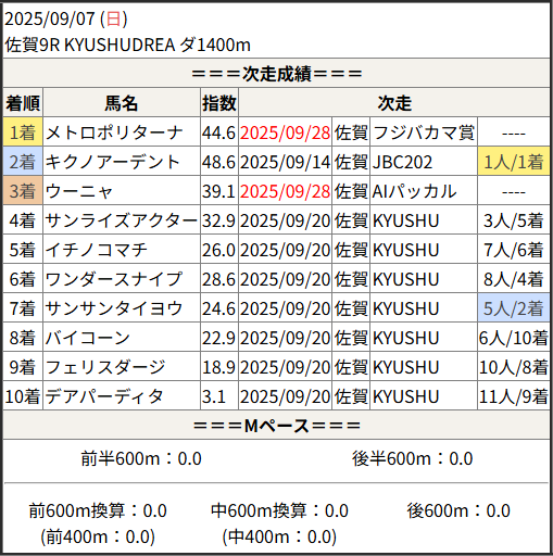 2025/09/28 佐賀9R フジバカマ賞:結果