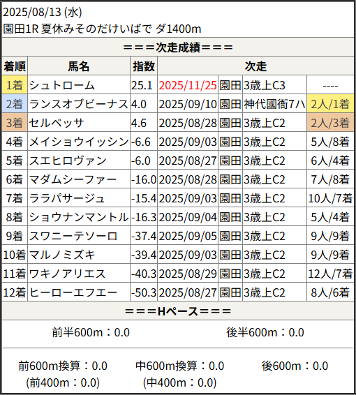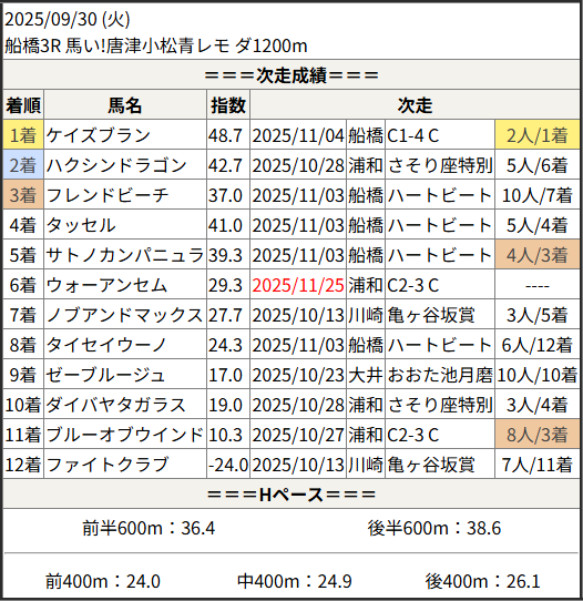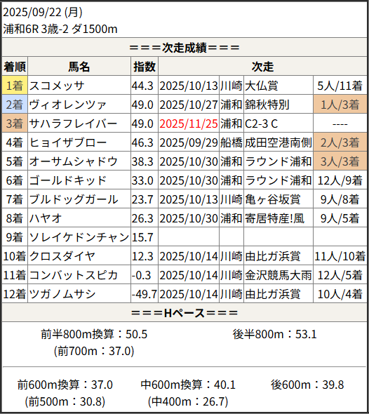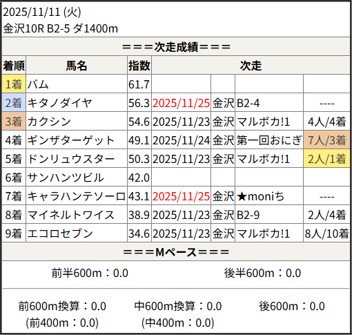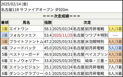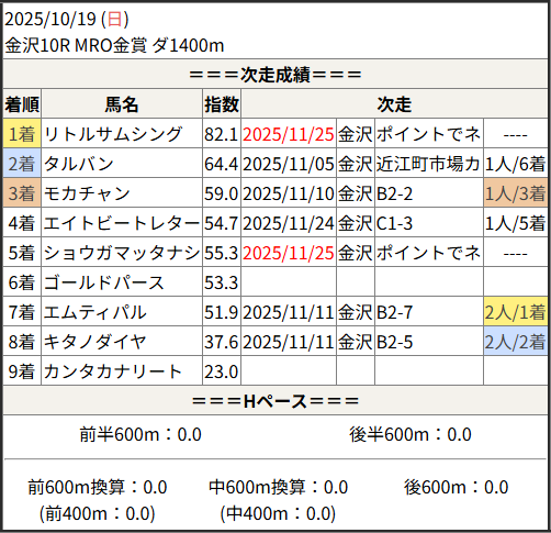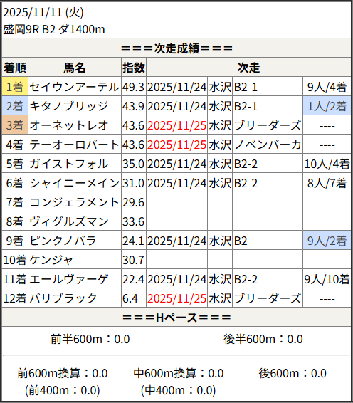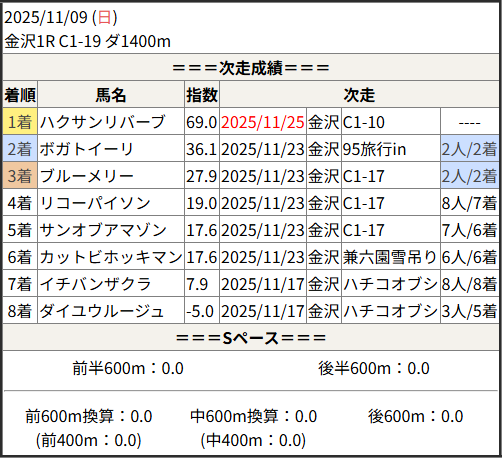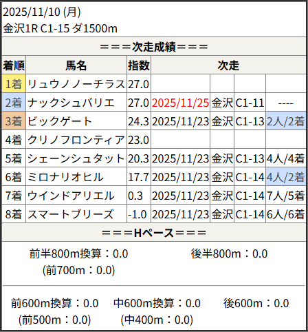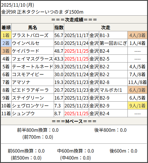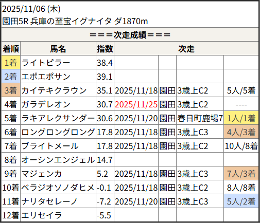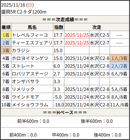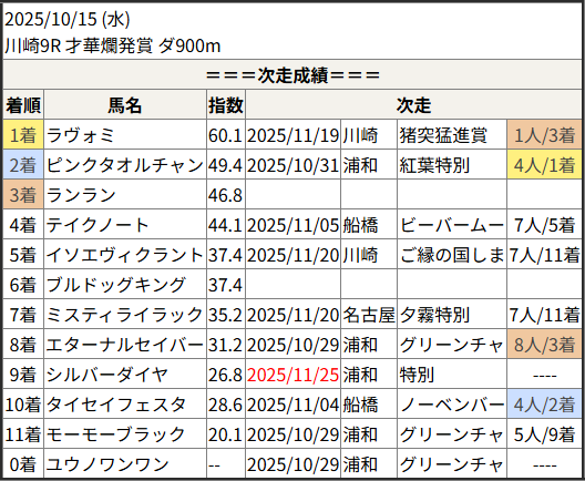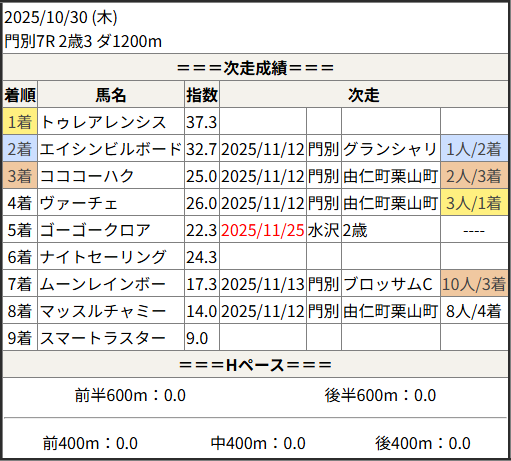 Home / 予想データ / 次走好走 / 2025/11/25 次走好走馬の目立つ組出身