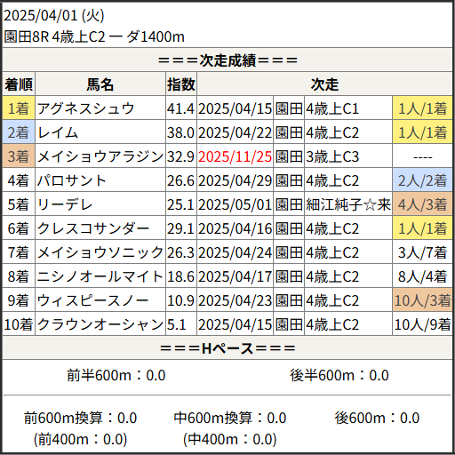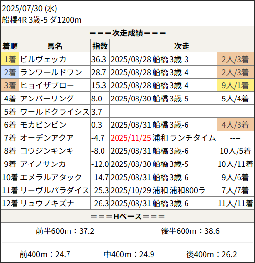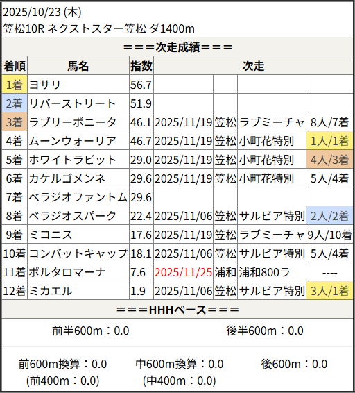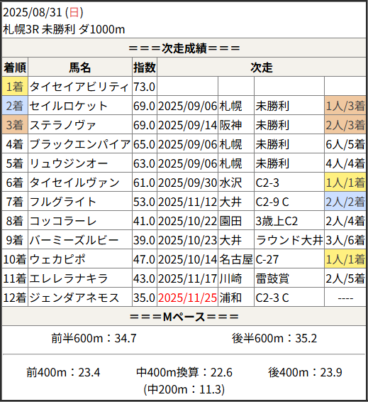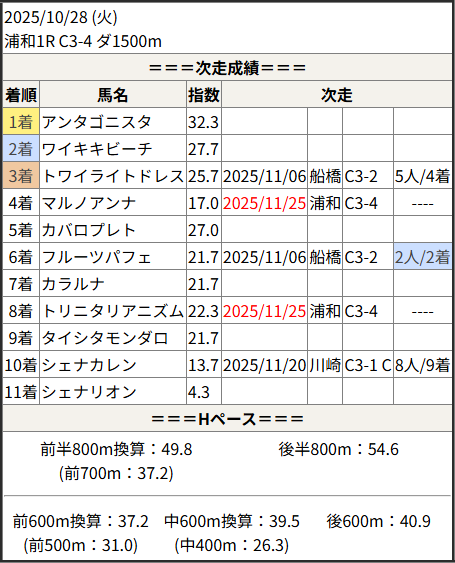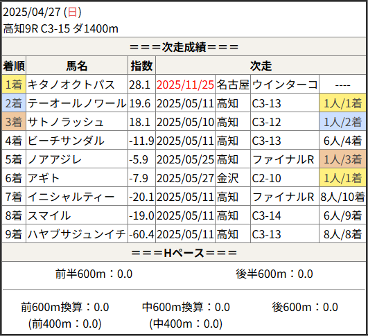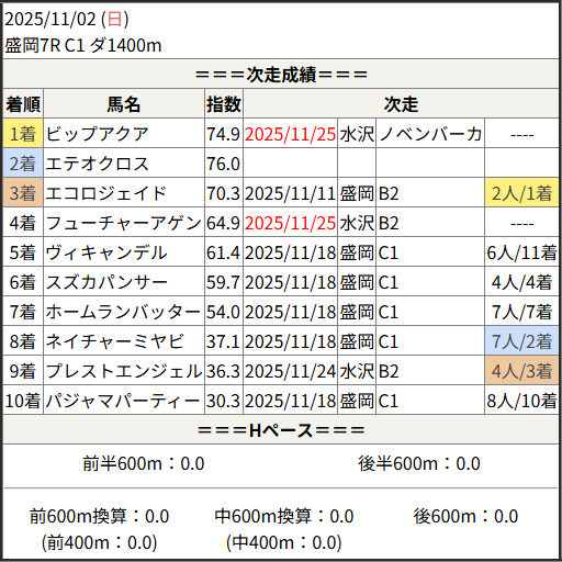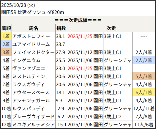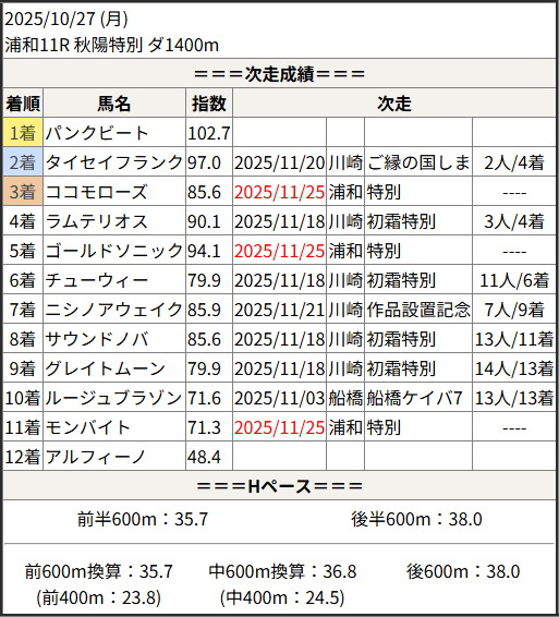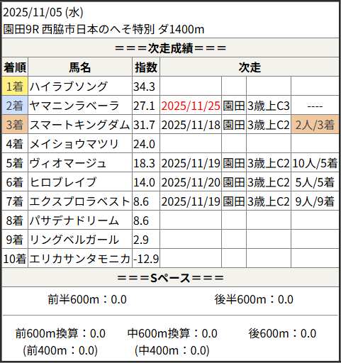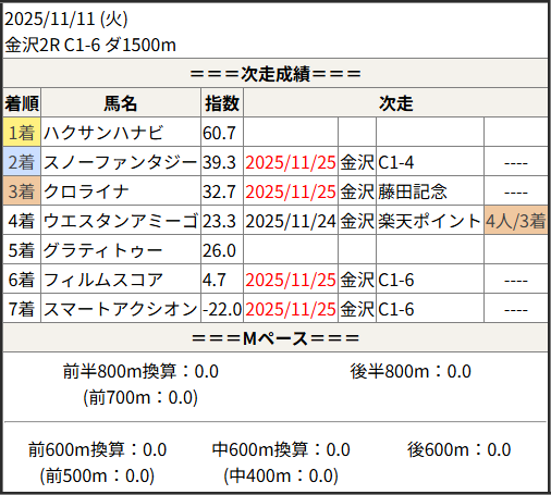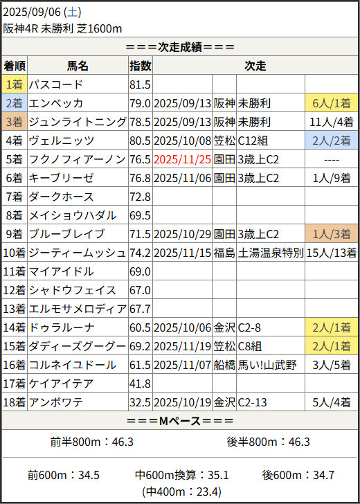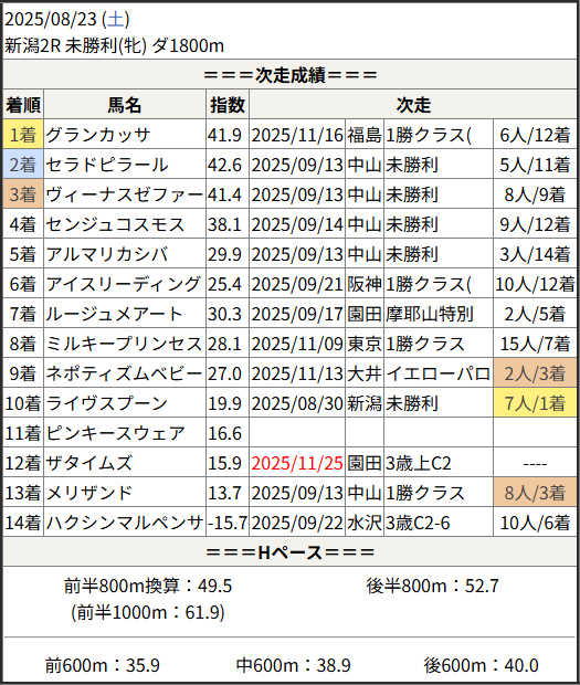 Home / 予想データ / 次走好走 / 2025/11/25 次走好走馬の目立つ組出身