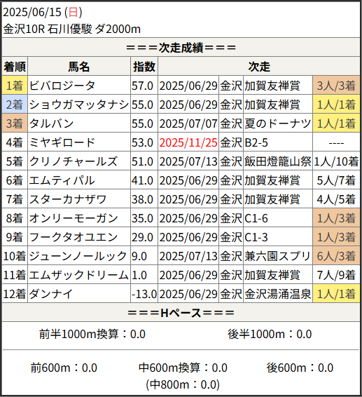 今回のメンバー相手に通用するかは、スピード指数表と合わせてご覧下さい。