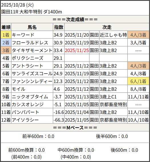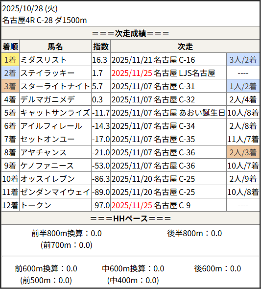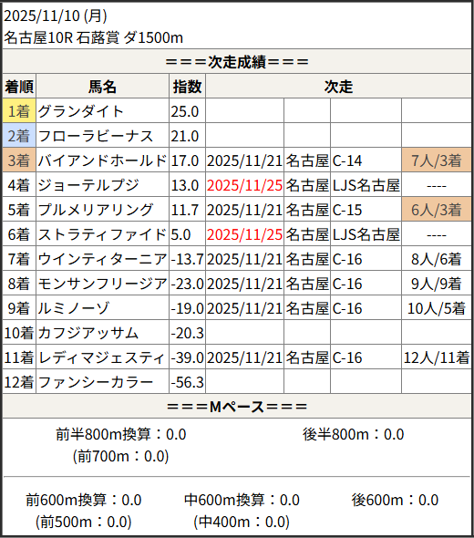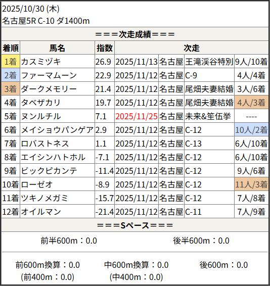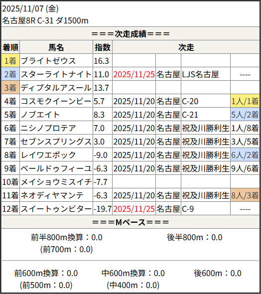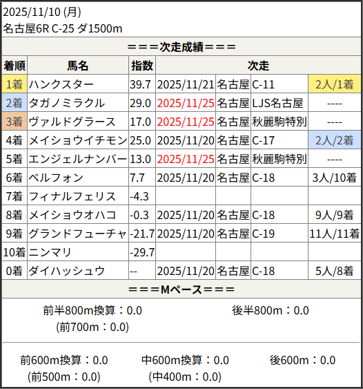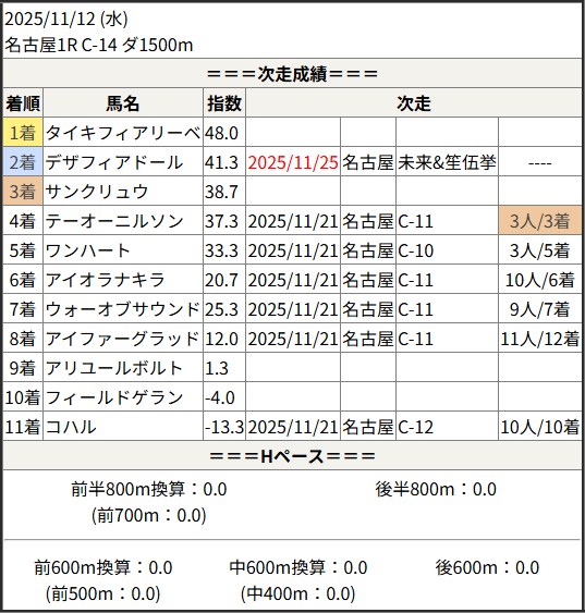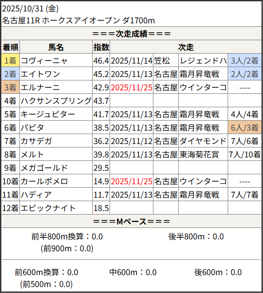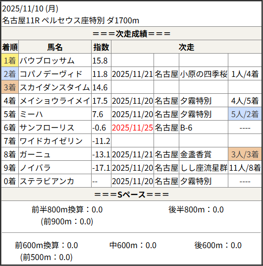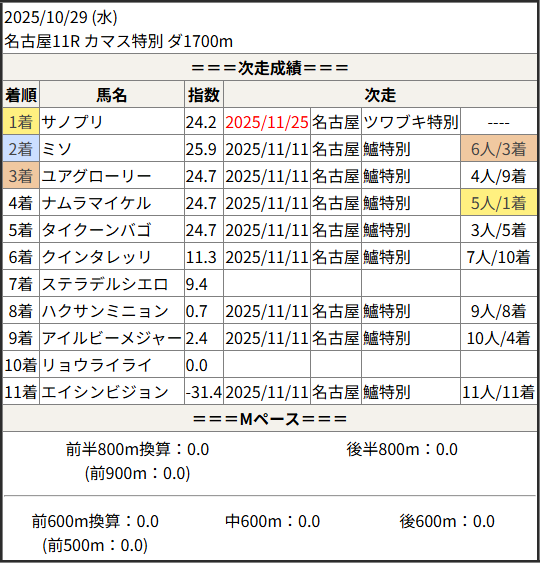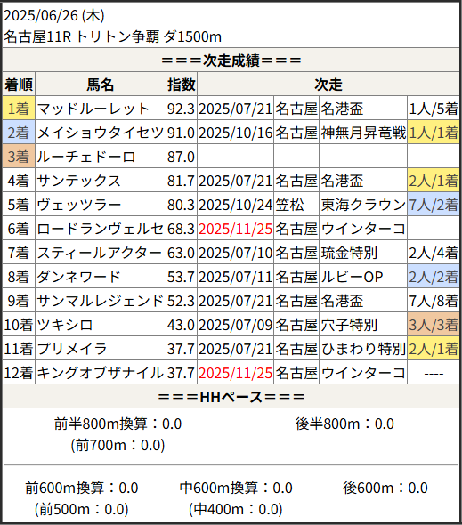 2025/11/25 名古屋11R ツワブキ特別:結果