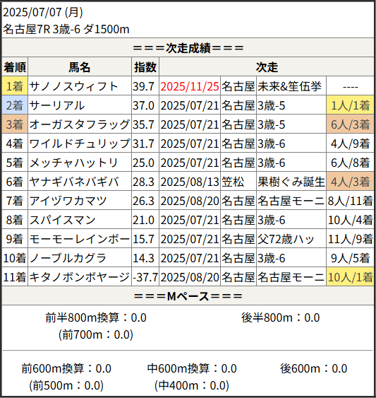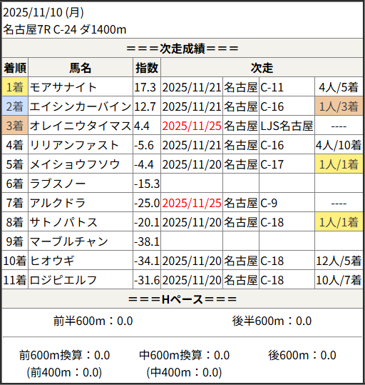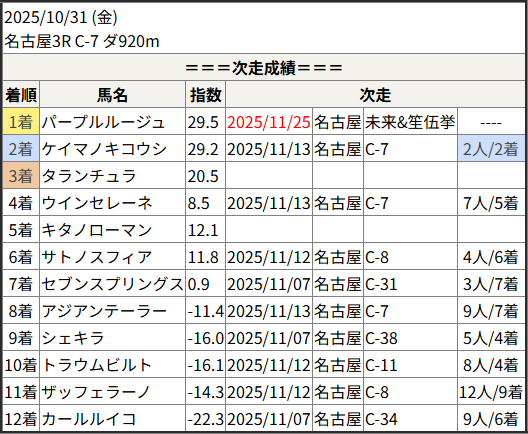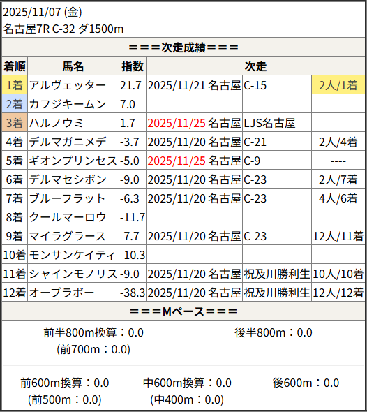 2025/11/25 名古屋7R 秋麗駒特別:結果